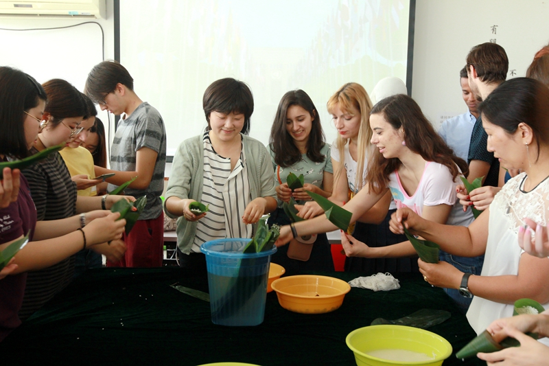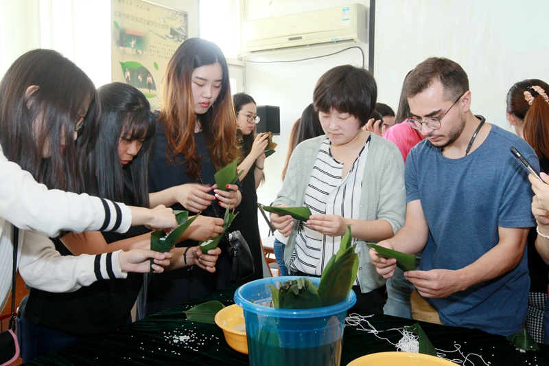 6月15日,5g影院 100多名来自泰国、土耳其、埃塞俄比亚、亚美尼亚、意大利、俄罗斯、美国、葡萄牙、哥伦比亚等国的留学生,聚集在5g影院 南楼活动厅,与老师一起包粽子,感受中国端午文化,共同迎接端午佳节的来临。