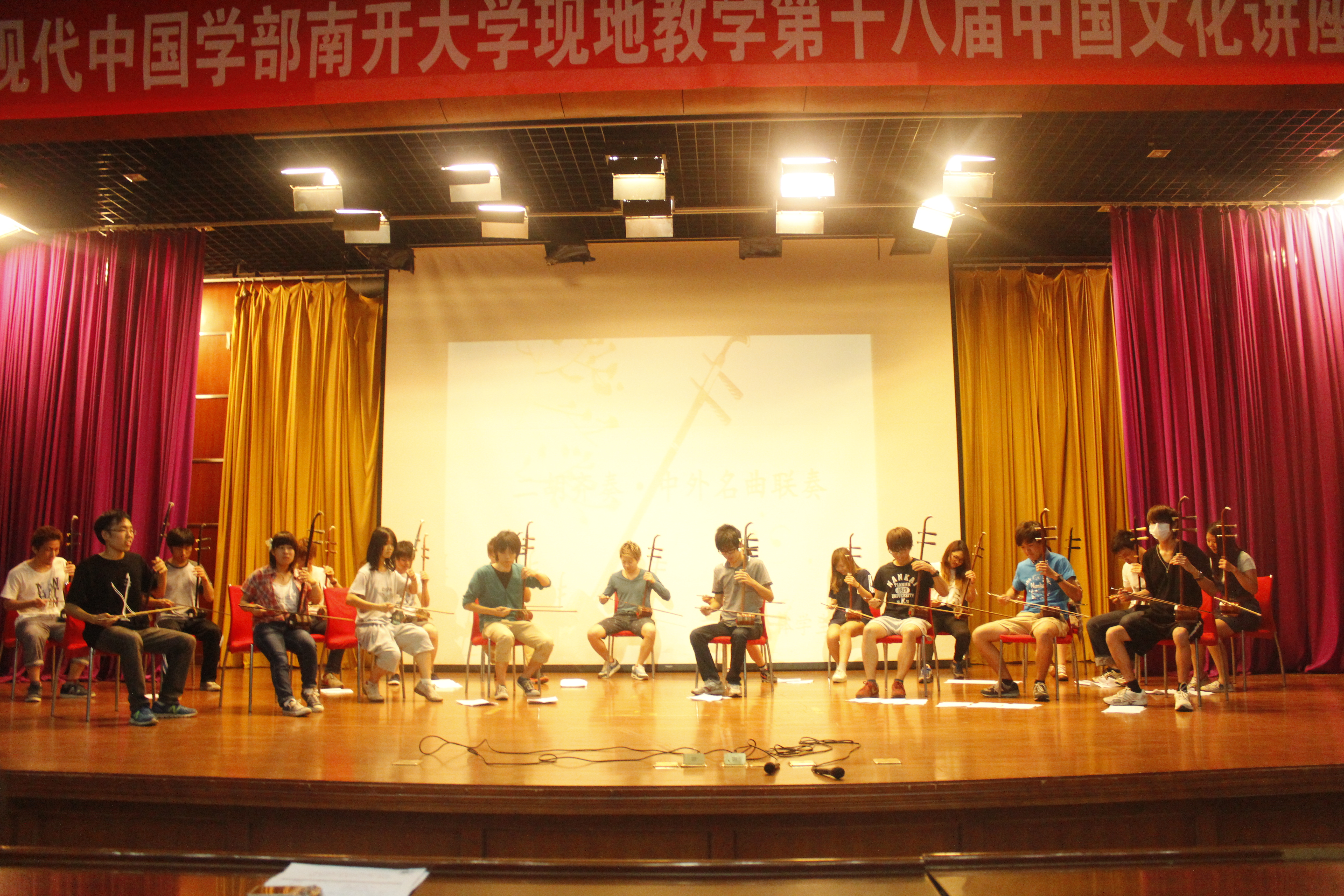 (通讯员 李伊蕾)7月3日上午,爱知大学现代中国学部现地教学发表会在主楼小礼堂举行。来自日本爱知大学的留学生呈献了四个月来在中国学习的成果,京剧、指压、二胡、笛子、舞蹈等节目精彩纷呈。
