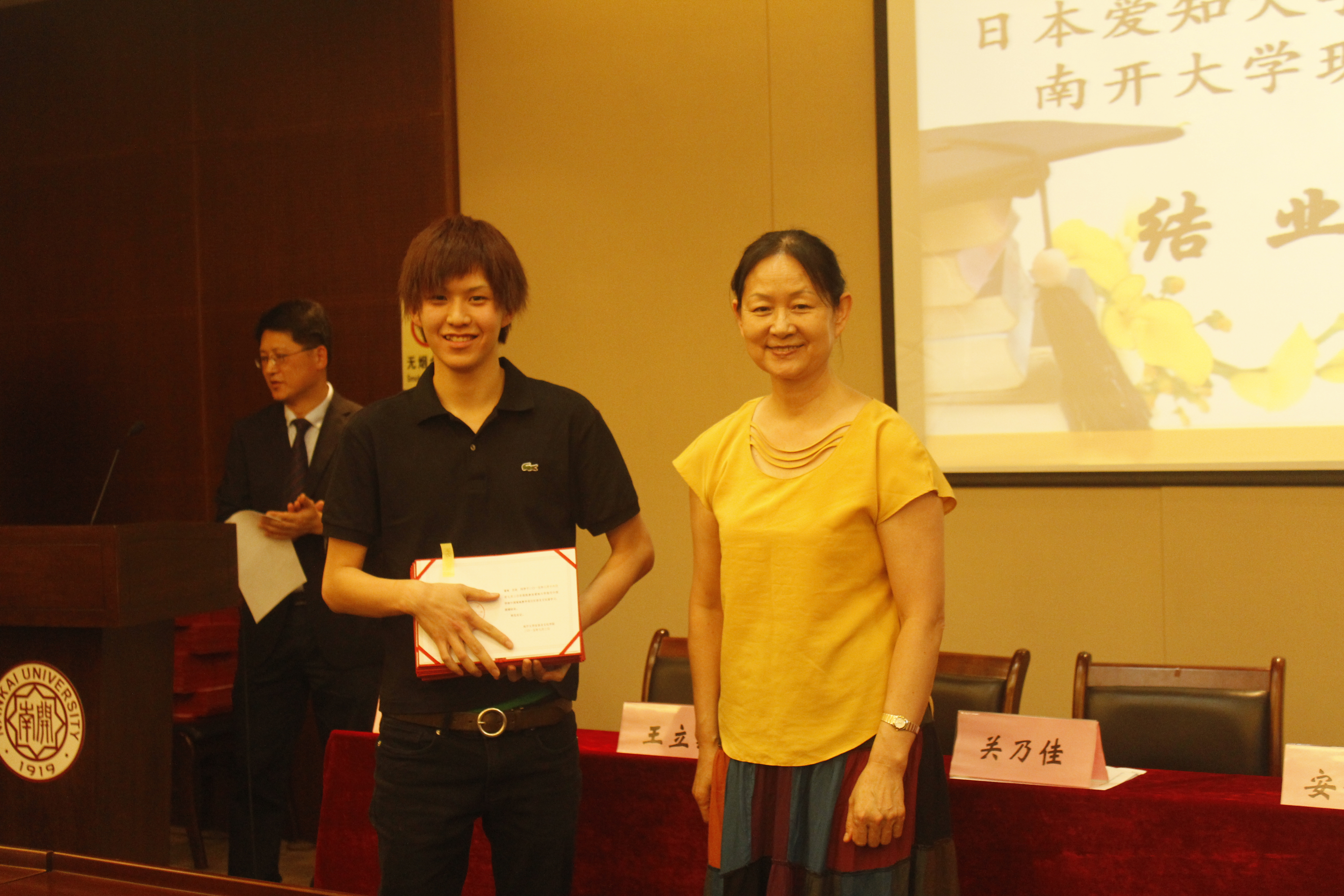 接下来,安部悟教授用中日双语对这个学期作了总结,并对同学们提出了殷切期望,希望同学们能够继续努力,不断进步,自觉担当起促进中日友好的责任,为中日交流做出自己的贡献。日本学生代表牧野皓介和巴山巧则在发言中提到,爱知大学的同学们从一开始的陌生到后来的熟悉,这几个月的学习带给了大家很多成长,并表达了回国后会继续努力学习汉语的决心。