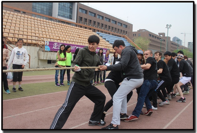 此次运动会将不同国家的留学生安排在一起比赛,让不同肤色、不同文化背景的留学生们共同感受运动带来的激情,无论是将不同国家的两位同学安排为一组的“盲人搬家”,还是多人参与的“拔河比赛”都将这些学生紧紧连在一起,在运动中增进了彼此的感情。另外,在4×100米比赛中,中国学生与留学生组成队伍,在合作中共同完成了速度与激情的挑战。