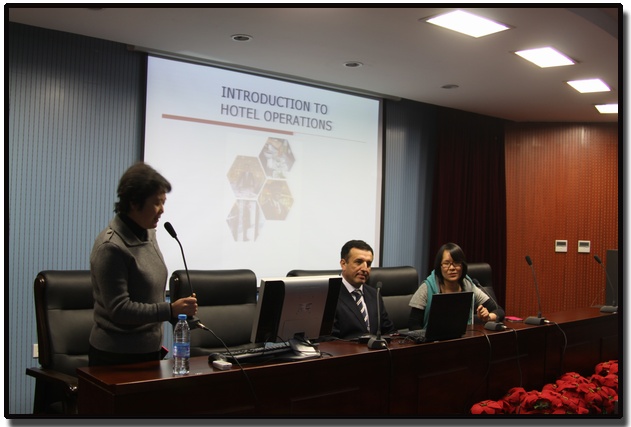 学习汉语的原因。最后,他还鼓励有志于从事酒店行业的同学们努力学习专业知识和英语,“希望将来在我工作的酒店看到你们”。