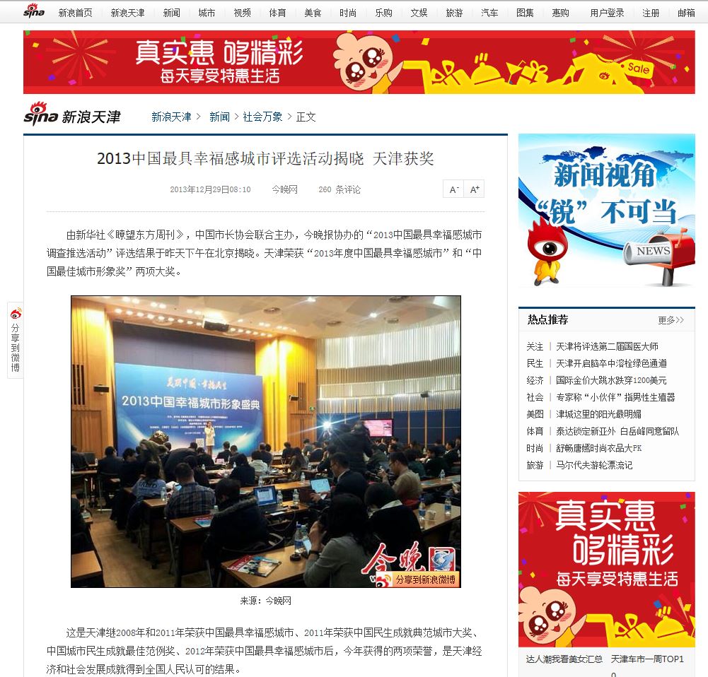 今晚报作为天津地区协办媒体,全程参与了地区推选活动,开展了“共建美丽天津 同筑中国之梦”系列活动,向全国推介美丽天津,为今年天津参评全国幸福感城市营造了良好的舆论环境。