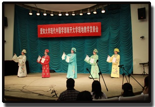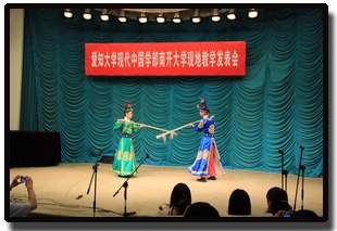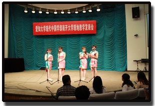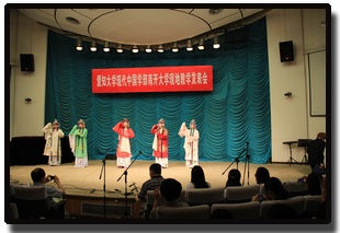 的学习成果。发表会进行了近四个小时,留学生共表演20余项节目,包括小品、演讲、京剧、二胡、竹笛、歌舞、武术、指压等形式。
