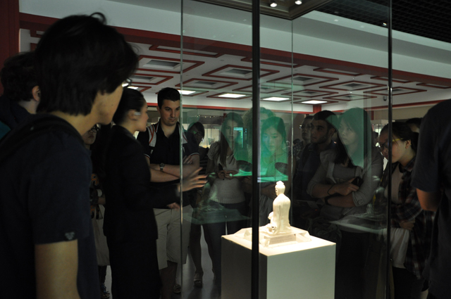(通讯员 朱慧丛)5月21日上午,5g影院 中级2班的50余名学生跟随层级老师来到坐落于天津市文化中心的博物馆新馆。在这里,他们度过了充实而有趣的一上午。 同学们在讲解员的引导下,首先参观了天津博物馆的精品馆和近代史馆。在精品馆中,各式剔透华美的瓷器、精雕细琢的玉器、古朴典雅的绘画、行云流水的书法,让学生们目不暇接。来自日本的谷崇紘同学对战国的青玉行气铭饰很感兴趣。他一直迷恋于古文和古文化,玉器上端庄大气的篆书铭文让他研究了很久。更多的同学被长达17米多、描绘了近3000个人物的《万笏朝天图》吸引了,他们都说没有在现实中见过这么长的中国画。 在近代史展厅,讲解员带同学们参观了从1840年鸦片战争到1949年新中国成立的历史。这一百年的时间深深影响了世界,也影响了中国,影响了天津。很多同学从这里才发现世界历史是如此错综复杂,看似分离却又紧密联系。来自美国的孙兵同学认为,当时的奥匈帝国并不强大,也没有像样儿的海军,清政府却仍然屈服于它,让人费解。热爱历史的意大利的伊兰娜同学则总结出了洋务运动对天津所产生的在经济、交通、文化、科教、社会生活等方面的影响。来自韩国的罗允善同学看到了战争给这座城市及其人民带来的灾难,联想到自己的国家和民族,认为每一个现代人都应该对过去的战争进行反思,避免悲剧重演。同样是来自韩国的姜恩善和徐惠珍同学觉得那时的滨江道很有意思,无论历史还是现代都和韩国的明洞很类似。 之后,同学们自由参观了博物馆的其他展厅,民间艺术、吉祥文物、天津人文、古代玉器等展厅都留下了同学们的足迹。 参观结束后,很多同学表示受益匪浅,希望以后多多组织此类活动。