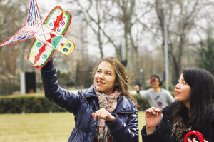 图为留学生放飞自己制作的风筝。记者 姜宝成 摄影报道