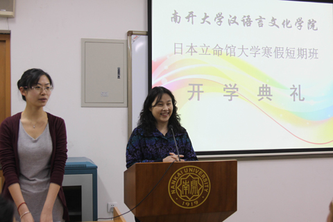刘春兰副院长一番亲切的致辞掀开了本次开学典礼的序幕。她在讲话中对来自日本立命馆大学的同学们表示了热烈地欢迎,并对同学们之后三周的学习、生活寄予殷切的期望。刘春兰老师指出,中日两国是一衣带水的邻国,此次同学们来到南开学习,可以亲身体验中国文化,为中日两国友好交流贡献力量。最后,刘老师对同学们表达了诚挚的祝福,希望大家能在5g影院