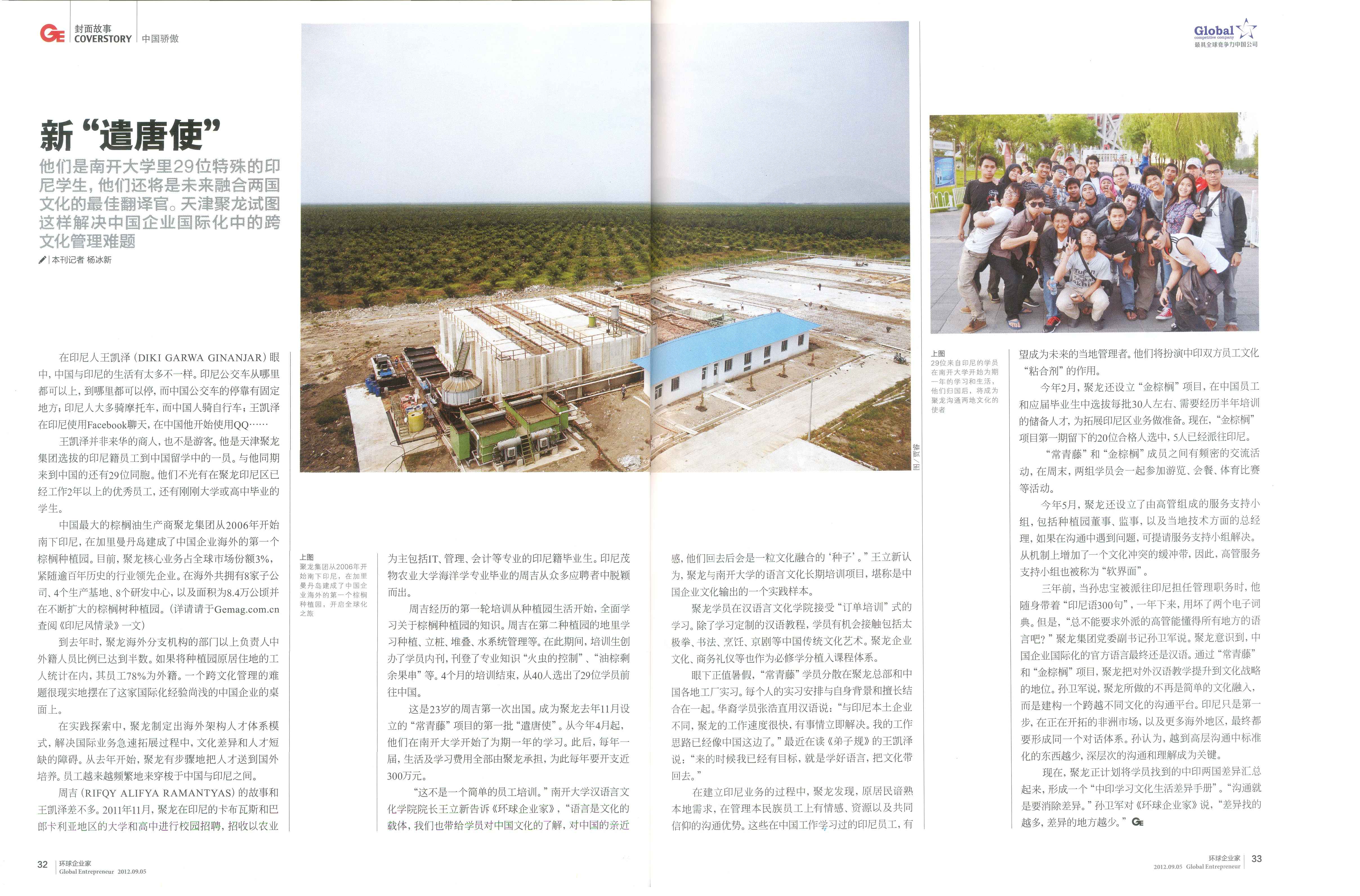 中国最大的棕榈油生产商聚龙集团从2006年开始 南下印尼,在加里曼丹岛建成厂中国企业海外的第一个棕榈种植园。目前,聚龙核心业务占全球市场份额3%,紧随逾百年历史的行业领先企业。在海外共拥有8家子公司、4个生产基地、8个研发中心,以及面积为日8.4万公顷并在不断扩大的棕榈树种植园。(详请请于Gemag.com.cn 查阅《印尼风情录》—文)