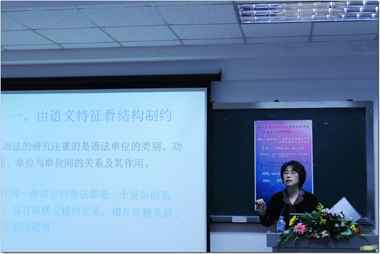 卢老师首先从发现问题的角度讲起,她提出要想发现汉语中那些我们中国人习焉不察的特点,我们就必须要将汉语和其他语言作对比。她特别强调,对外汉语语法研究要想区别于汉语本体研究,就一定要和教学结合起来。她说:“留学生在学习汉语过程中出现的偏误,往往是我们分析研究汉语最好的切入点。”卢老师在讲座过程中以汉日动词、“了”和“的”为例,从语言材料出发,生动形象地为同学们讲解了如何收集材料、如何分类、如何思考、如何分析、如何论证等问题。