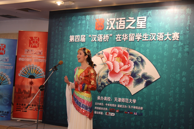 的代表参加了此次比赛。经过笔试选拔,25名外国留学生成功进入面试环节,展现才艺,实力PK。比赛气氛热烈,评委的点评睿智、幽默,各国选手的表现也精彩纷呈,有高亢的歌声也有深情的吟诵,有异域风情的舞蹈也有激扬的长鼓,选手们都展示了自己的才华,展示了对中国、对汉语的热爱。