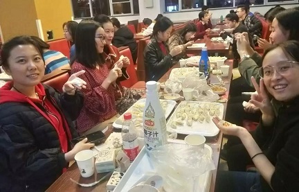 大家围坐在一起,用准备好的馅料、饺子皮和工具开始包饺子,或者说说饺子里的寓意,或者说说每天自己或身边的趣事,这场以中国传统的饺子为主角的活动,在大家进一步拉近距离的同时,也让大家感受二十四节气的传统文化。2019年的冬天,同学们度过了一个美好而有意义的立冬节,吃到了自己动手包的饺子,也加深了彼此之间的友谊,更弘扬了中华民族优秀的传统文化。