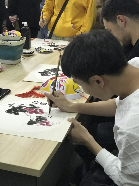 随后,为让留学生切实感受中华传统艺术的魅力,工艺美术职业学院的师生指导留学生们体验脸谱绘制和中国写意绘画。在志愿者们的帮助下,窦尔敦、张飞、姜维、典韦等一个个生动形象的京剧脸谱跃然而出,一串串水墨葡萄栩栩如生,留学生同学们在亲身体验中感受着京剧与中国画的无穷魅力。