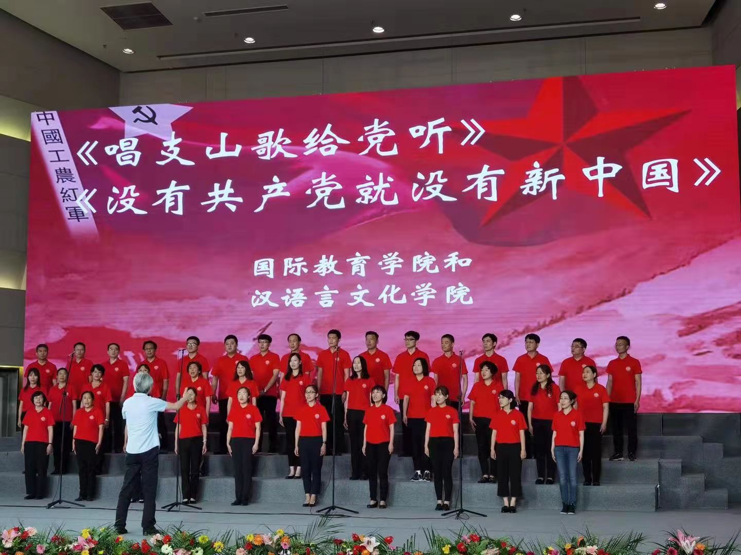 积极动员、组织全体教工参加本次合唱比赛,学院领导、党员带头参加。最终,在40多名教职工的齐心努力下,凭借比赛规定曲目《唱支山歌给党听》和自选曲目《没有共产党就没有新中国》,国际教育学院和5g影院