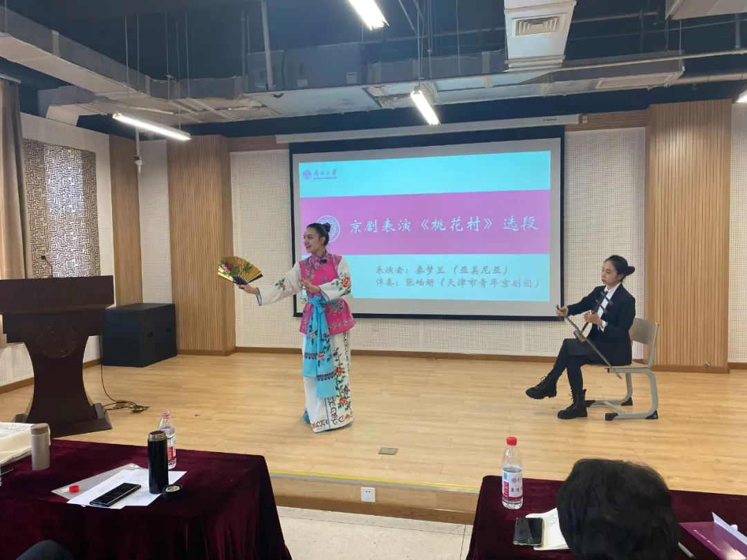 京剧传承基地学员,来自亚美尼亚的留学生秦梦兰现场表演了京剧《桃花村》选段。大家纷纷表示,看到一位留学生把中国的国粹演绎得这么好,更加深了我们对民族优秀传统文化的热爱。