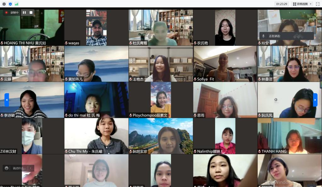 的全体教师向参加汉语进修项目的同学们表示欢迎。她表示,全体教师将为学员们带来丰富的汉语和中国文化课程,希望同学们在“云端”跟随老师开启全新的汉语学习和中国文化体验之旅。