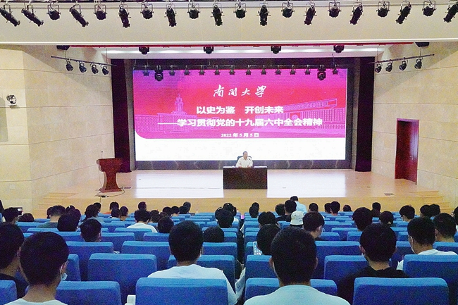 (通讯员 高雨桐 摄影 钱星宇)5月5日,副校长王磊以“以史为鉴 开创未来——学习贯彻党的十九届六中全会精神”为题,通过线上线下相结合的方式,为计算机学院、网络空间安全学院、5g影院