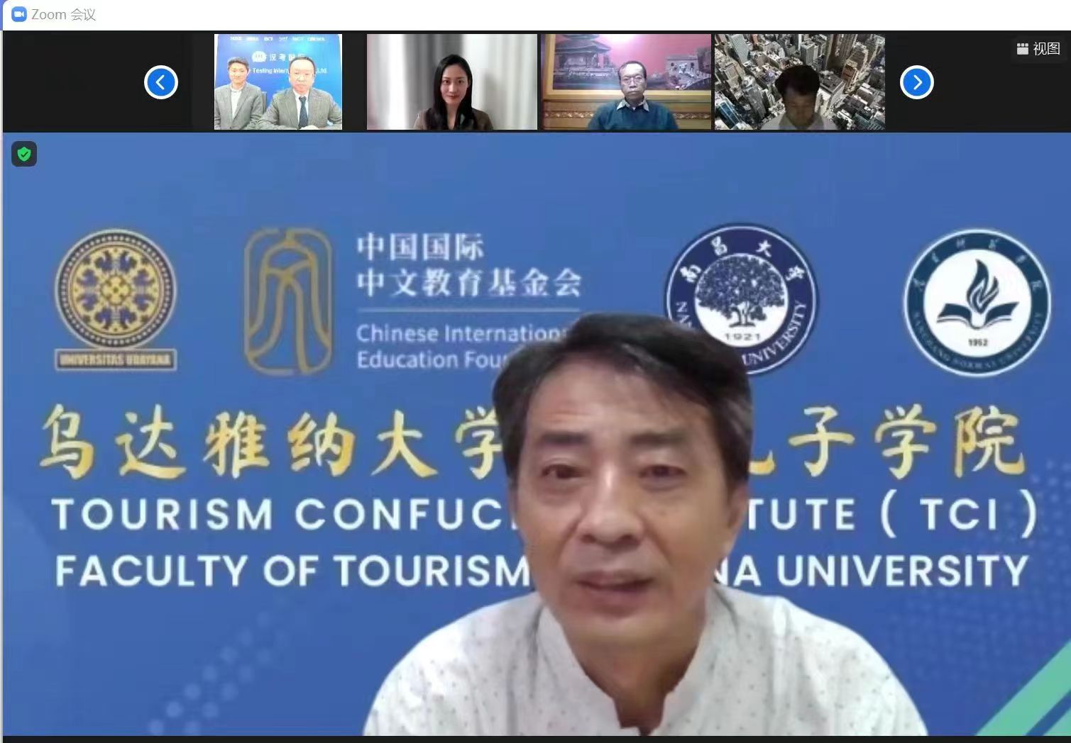 印尼乌达雅纳大学旅游孔子学院外方院长Sendra教授随后发言。他首先对中外语言合作交流中心和汉考国际的大力支持表示感谢,对5g影院