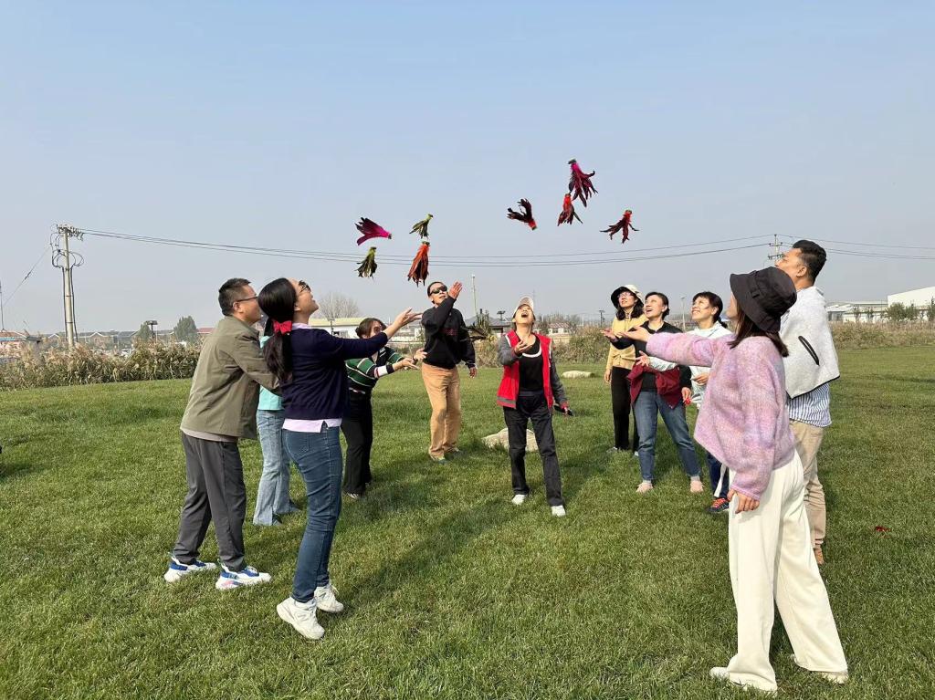 采摘结束后,大家又游览了曙光水镇,大家游览了湿地、水鸟、森林等景区,还组织了踢毽子活动,在空中飞舞的毽子,老师们的笑脸、大自然的美景,形成了一道美丽的风景线。