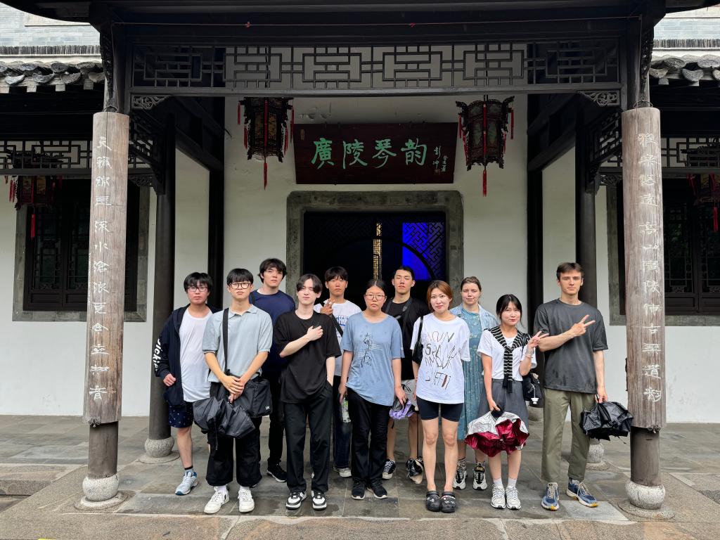 在中国大运河博物馆,中外师生感受到了运河文化的博大精深。来自乌兹别克斯坦的留学生柯强表示:大运河博物馆中大量与大运河相关的文物和资料展示了运河沿线地区的自然风光、人文景观和历史文化,为留学生的语言学习提供了寓学于行的丰富载体。自己被大运河的历史底蕴深深感染;在史可法纪念馆,师生一行被民族英雄史可法的生平和事迹深深触动,深刻体悟到了中国人深沉的爱国情怀和英雄气概;在镇江博物馆和西津渡遗址,中外师生了解了镇江的历史沿革和文化特色,感受古代渡口的繁华;在泰州梅兰纪念馆,通过了解梅兰芳先生的生平以及京剧造诣,给中外师生一行共同上了一堂“沉浸式美育课”,体会到了中国京剧艺术的博大精深。来自俄罗斯的留学生珍珠表示:很开心自己在5g影院