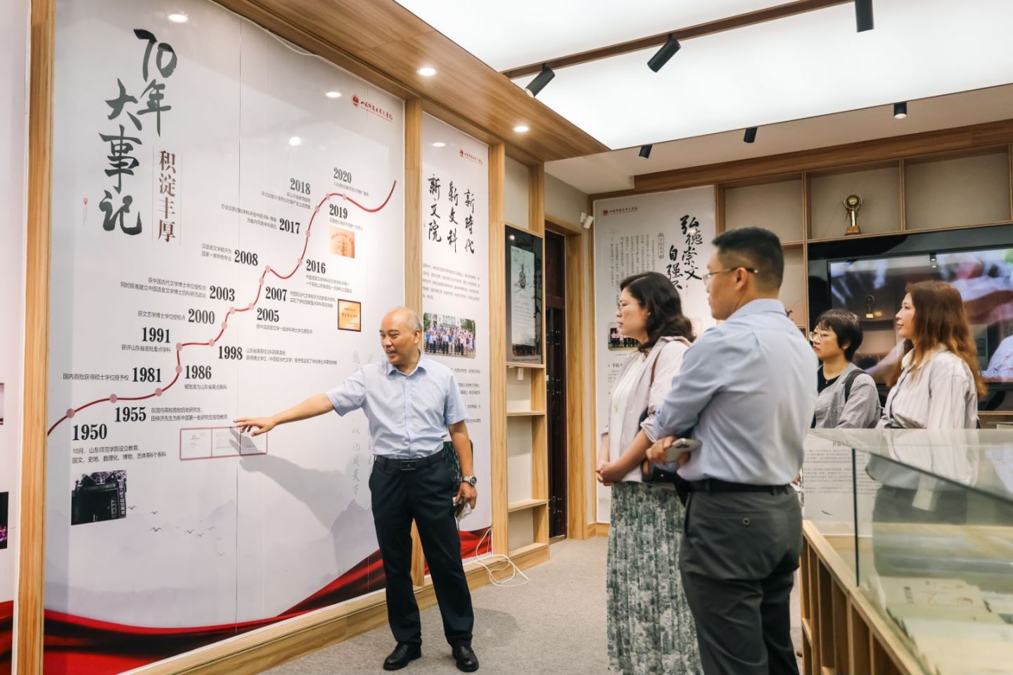 当天,学院一行还参观了山东师范大学文学院“弘德崇文 自强不息”学院发展史主题展,详细了解山东师范大学文学院的发展历程和办学成果。