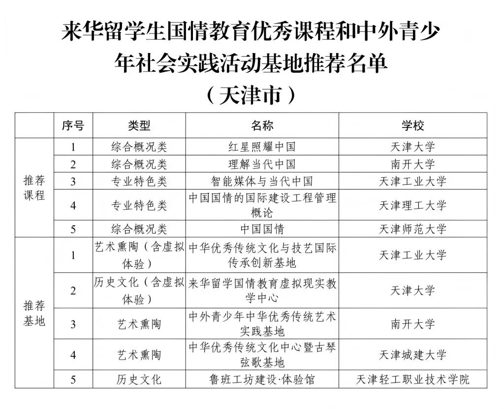 (通讯员 王红厂)近日,受教育部国际合作与交流司委托,中国教育国际交流协会面向全国高校开展了首批来华留学生国情教育优秀课程和中外青少年社会实践活动基地征集工作。经专家研究和审定,最终共推荐了111门课程和 115个基地。其中,天津市5门课程和5个基地获推,5g影院