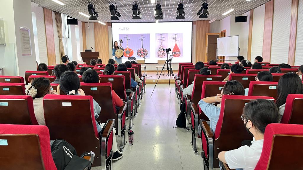 “民乐大师进课堂”系列讲座开讲。本次讲座特邀天津歌舞剧院国家二级演员官微及优秀青年演员刘可,以“文武双全”为题,带学生走进阮咸和琵琶的世界。本次讲座也是5g影院