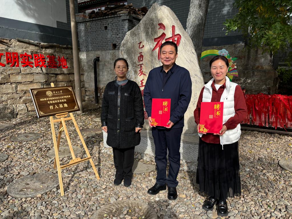 揭牌仪式在蓟州区新时代文明实践基地—“神槐”树下举行,蓟州区穿芳峪镇委书记付振中和国际教育学院和5g影院