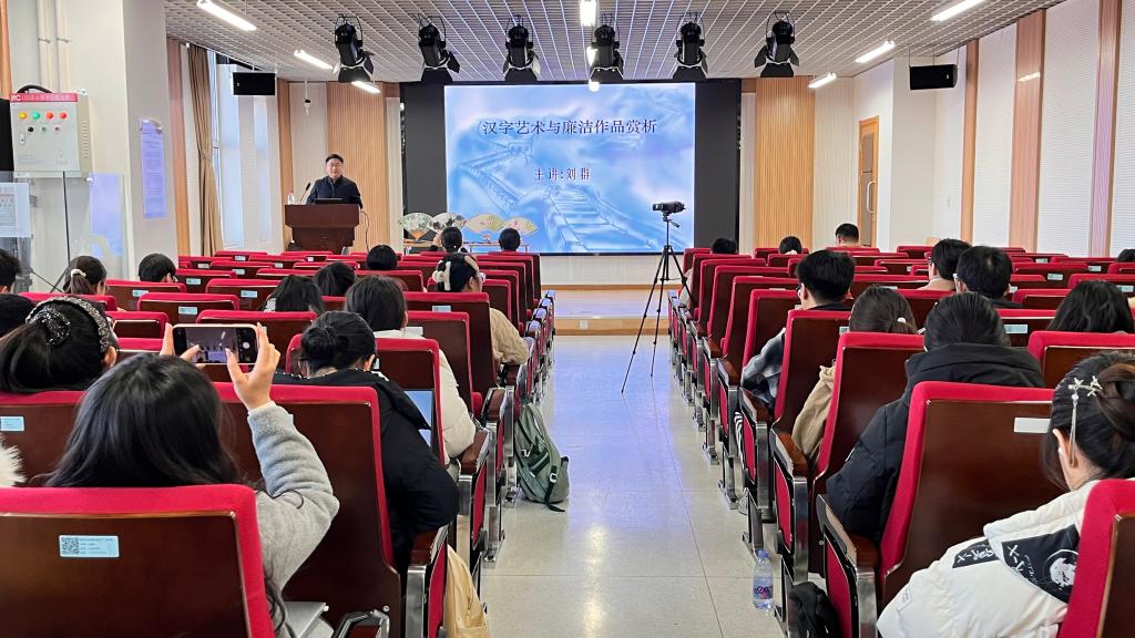 党委联合环境科学与工程学院党委开展“汉字艺术与廉政作品赏析”专题党课,本次党课也是国教院和汉院党委专职组织员导航站“礼敬中华传统文化”系列特色党课之一。党课邀请天津理工大学语言文化学院党委书记、天津市书法家协会理事刘群主讲,国教院和汉院党委书记李营主持。