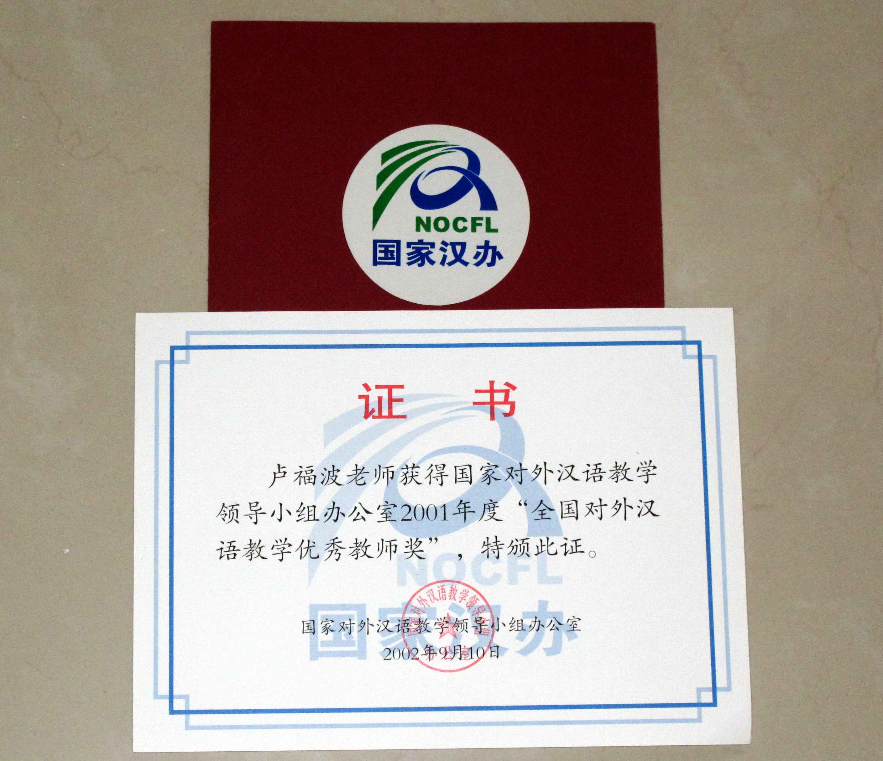 ⑸2002年 获国家汉办全国对外汉语教学优秀教师奖。