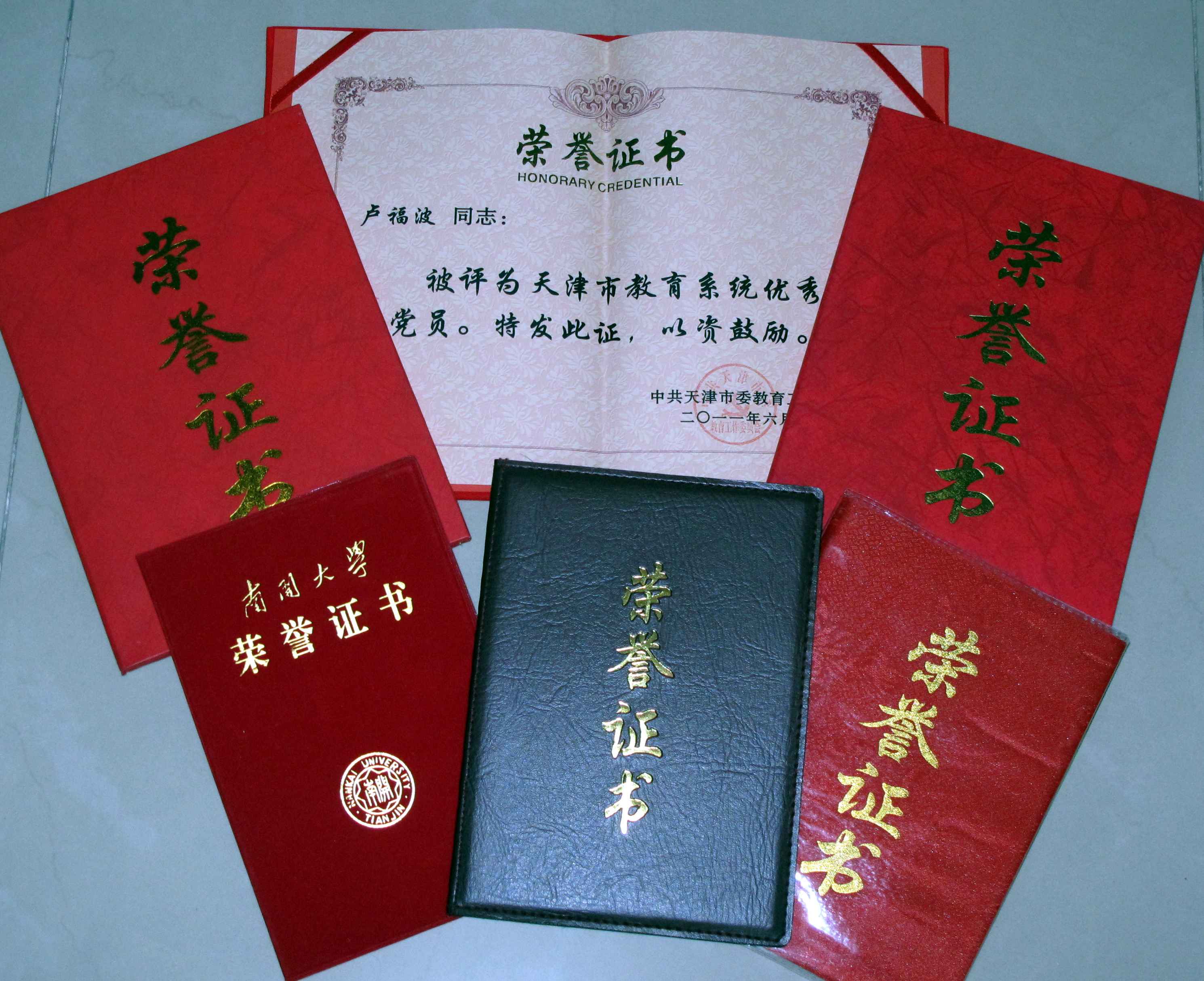 ⑻2011年 获天津市高教系统优秀共产党员称号。